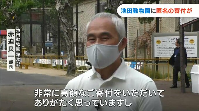 思わぬ贈り物です。岡山市の池田動物園におととい(3日)、匿名の人物から寄付金が贈られました。「経営の厳しい動物園の力になれれば」と語っていたということです。