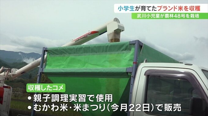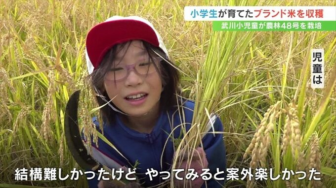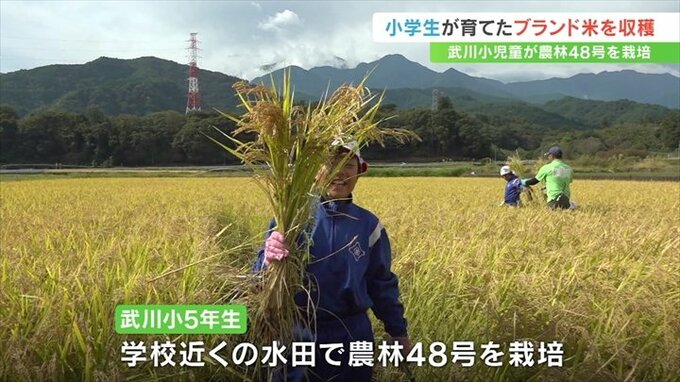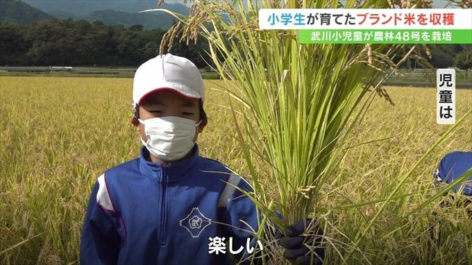 児童たちは学校近くの水田で「農林48号」というブランド米を栽培し、この秋、見事に実りました。