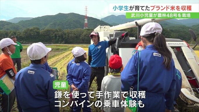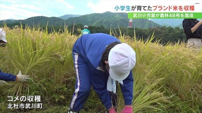 北杜市の小学生が育てたブランド米が見事に実り、きょう5日に自分たちの手で収穫しました。
