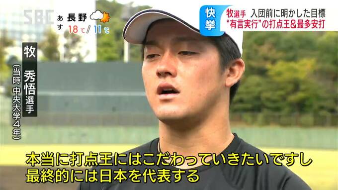 3年前、ドラフト会議を前にしたSBCの取材で、プロでの目標を次のように語っていた牧選手。