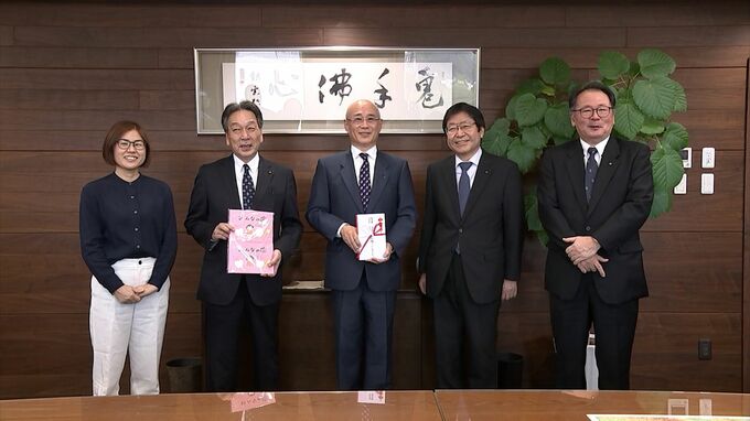 贈呈式では、冊子の制作にあたった山陽リビングメディアから岡山県歯科医師会に3000冊の目録が手渡されました。