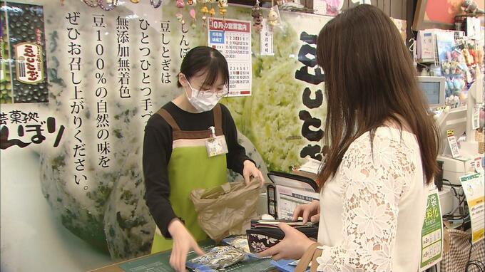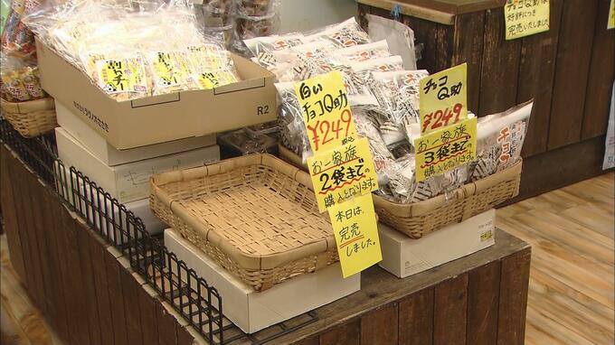 5日現在、青森県八戸市内の一部の店でのみ限定販売されているこの『白いチョコQ助』。八戸市の市場「八食センター」内にある「民芸菓子処 しんぼり」では5日から販売が始まり、多くの人が買い求めていました。