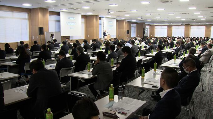 会には、全国の自治体や企業から約280人が集まりました。明治時代まで使われた北前船は、瀬戸内海などを経由し大阪と北海道を結んだ船で、当時の物流の要でした。