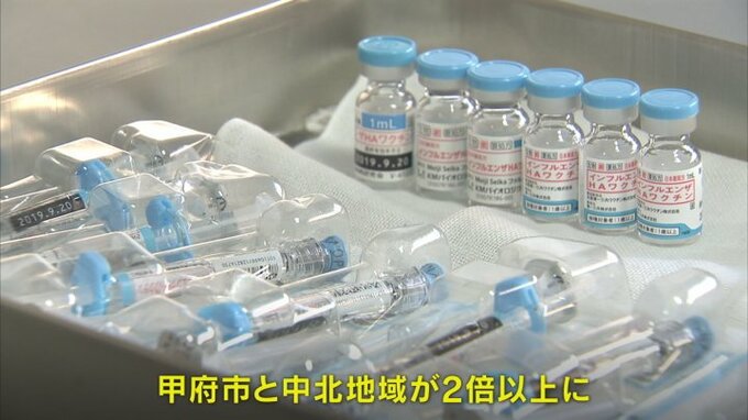 このうち甲府市と中北地域は報告数が2倍以上に増えています。