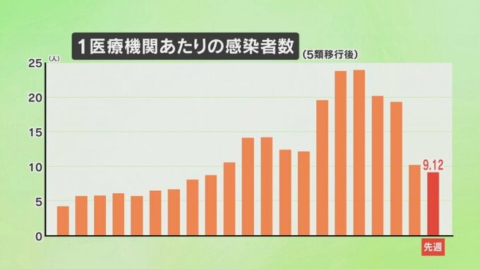 1医療機関あたりの平均は9.12人で、8月末から9月初めをピークに4週連続で減少しています。