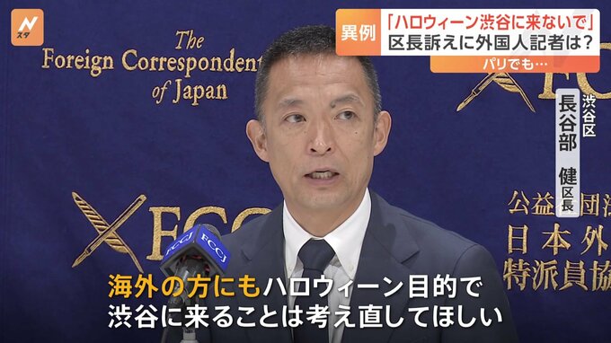 「渋谷はハロウィーンのイベント会場ではない」。今月末にハロウィーンを控え、東京の渋谷区長が改めて会見を行い、外国人の観光客などにも「渋谷に来ないで欲しい」と強く呼びかけました。都内にある日本外国特派…