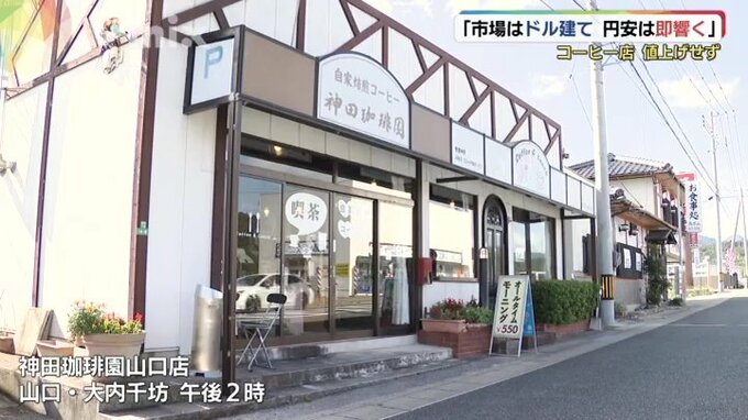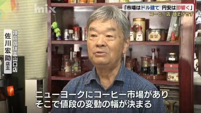 「ニューヨークにコーヒー市場があり、そこで値段の変動の幅が決まる。それは全部ドル建てで、円安になりますともろに響いてくる。即響いてくるっていう感じですね」