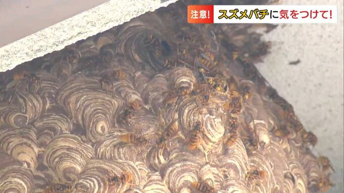 ひとつの巣には1000匹以上ものハチがいると言われ、一般の人が巣を駆除するのはかなり危険だといいます。