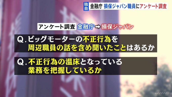 ビッグモーターによる保険金の不正請求問題を受け、金融庁が損保ジャパンの職員に対し、アンケート調査を行っていることがJNNの取材で明らかとなりました。損保ジャパンをめぐっては、ビッグモーターの不正の可能…