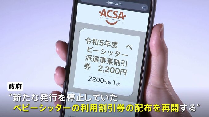 政府が“新たな発行を停止していた、ベビーシッターの利用割引券の配布を再開する”と発表しました。政府が支援するベビーシッターの利用割引券の配布事業は、今年度は39万枚分を当初予算に計上していましたが、今…