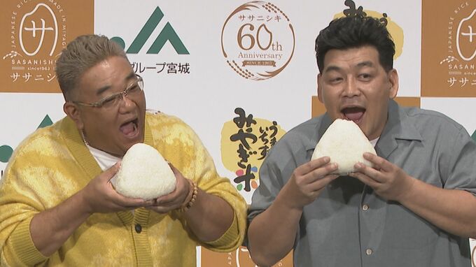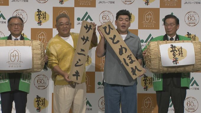 お笑いコンビ・サンドウィッチマンの伊達みきおさんと富澤たけしさんが、JAグループ宮城の「令和5年産宮城米説明会および新CM発表会」に登壇しました。