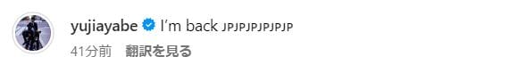 2017年に活動拠点を米国に移しているはずの綾部さんが、「 I’m back JPJPJPJPJPJP」という一行のテキストを投稿。写真は神宮前交差点と向こう側にそびえ立つラフォーレ原宿の建物をバックに、サングラスとキャップでリラックスした決めポーズの綾部さん、というものです。
