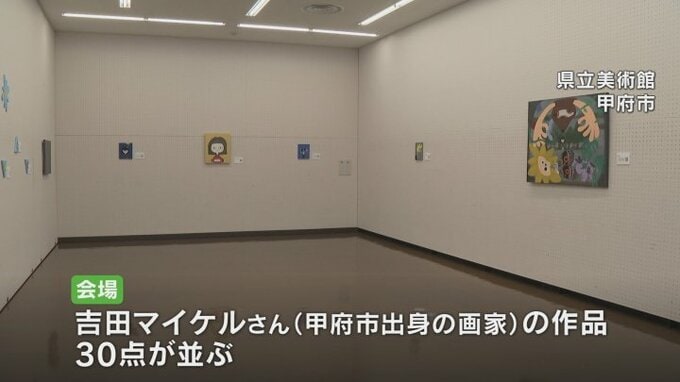 会場には甲府市出身の画家吉田マイケルさんの作品30点が並んでいます。