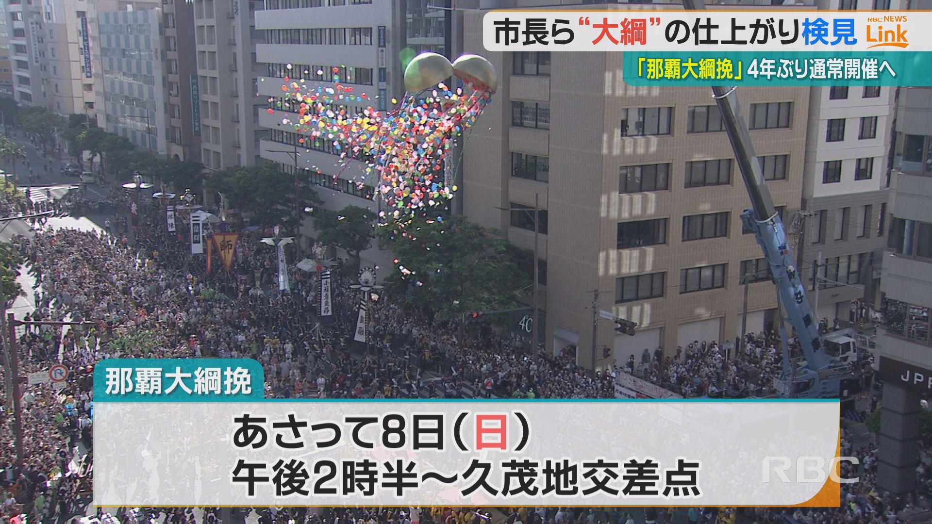 那覇大綱挽は、10月8日の日曜日の午後2時半から久茂地交差点で行われます。