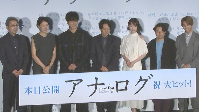 嵐の二宮和也さん、波瑠さん、桐谷健太さん、なにわ男子の藤原丈一郎さんらが、映画「アナログ」の初日舞台挨拶に登場しました。