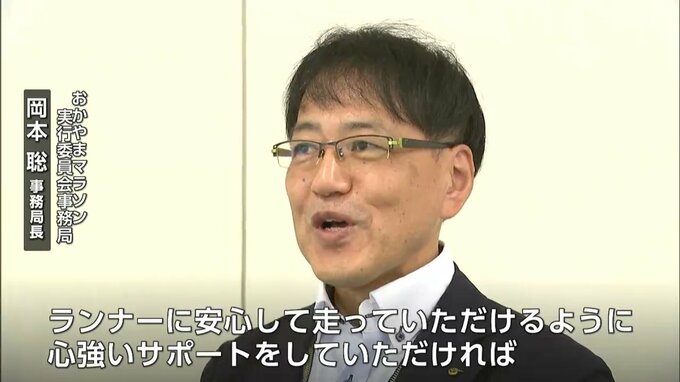 (おかやまマラソン実行委員会事務局 岡本聡事務局長)「ランナーが安心して走っていただけるように、心強いサポートをしていただければ」