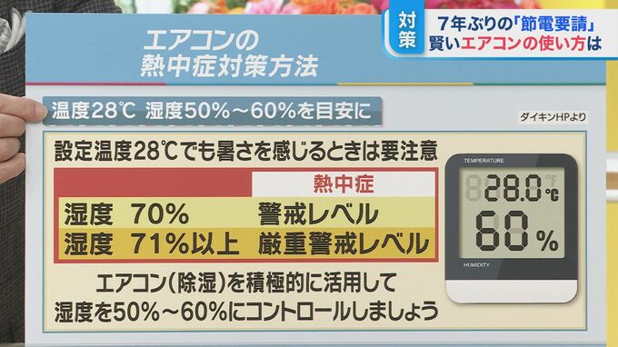 『室温28度 湿度50~60%』に設定していただいて、湿度の変化を肌で感じるのはなかなか難しいかもしれないんですが、70%以上になると熱中症警戒レベルになりますので。