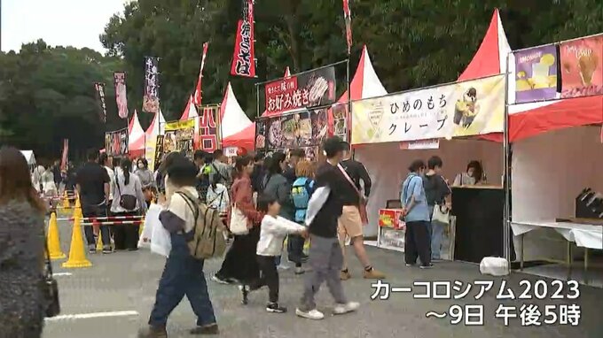 四輪バギーの操縦体験やグルメなど、家族で楽しむことができるイベントコーナーも設けられた「カーコロシアム」は、あす(9日)午後5時まで開催されています。
