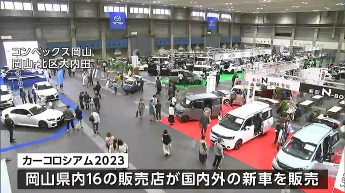 岡山県内最大級の新車の大商談会「カーコロシアム2023」が岡山市北区大内田のコンベックス岡山で始まりました。