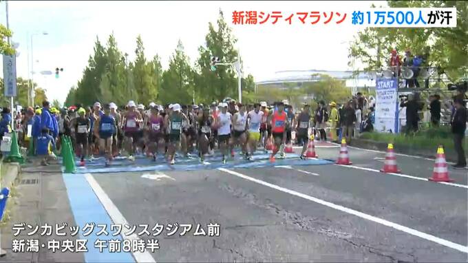 秋晴れのもと開催された新潟シティマラソン。42.195キロを走るフルマラソンのランナーは、新潟市中央区のデンカビッグスワンスタジアム前からスタートです。このほか、10.6キロを走るファンラン、自由な距離を走るユニバーサルランがあり、合わせておよそ1万500人がエントリーしました。