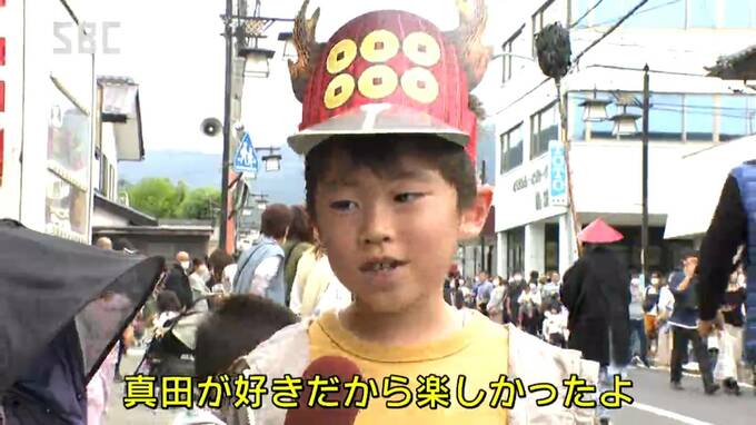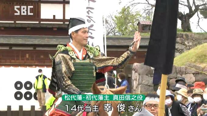 松代藩・初代藩主の真田信之役は、真田家の14代当主眞田幸俊さんが務め、きょうは行列を一目見ようと多くの家族連れでにぎわいました。