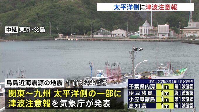 けさ早く、伊豆諸島の鳥島近海で発生した地震に伴い、太平洋側の広い範囲で津波が観測されています。気象庁は、注意報が発表されている地域では海や海岸から直ちに離れるよう呼びかけています。きょう午前5時半ご…