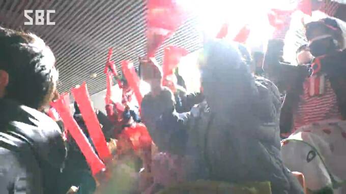 スタンドにはおよそ300人が駆け付け、スティック型のバルーンなどを打ち鳴らしながら最後まで声援を送りました。