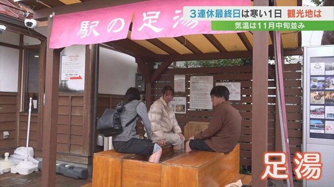 きょう9日は甲府の最高気温が17.5℃と11月中旬並みとなり、駅前では足湯が観光客の人気に。