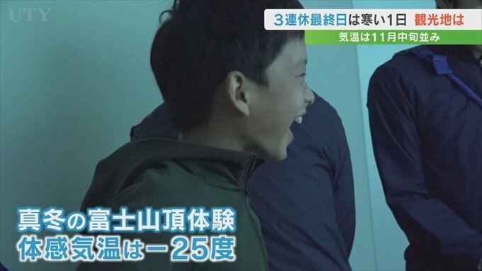 目玉は真冬の富士山山頂の寒さ体験で、体感温度は-25℃!