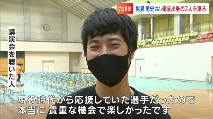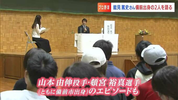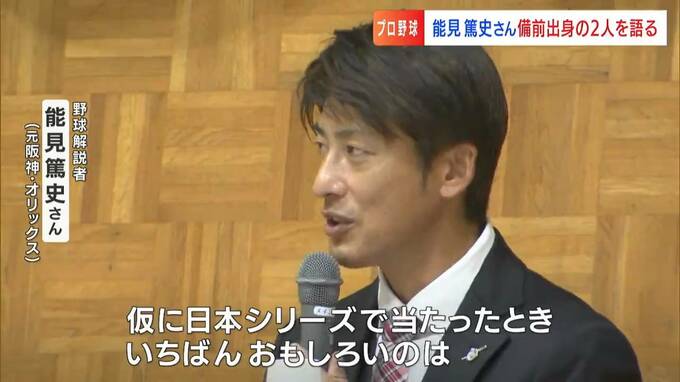 講演会が開かれた備前市は、史上初、3年連続投手4冠を目指す山本由伸投手や、パリーグ首位打者目前の頓宮裕真選手の出身地。能見さんは、元同僚の2人についてのエピソードも…。