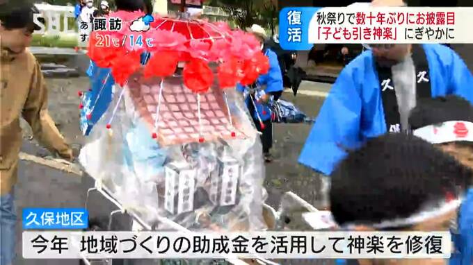 3連休最終日の9日、長野市では秋祭りが行われ、子どもたちが引く神楽が数十年ぶりに復活しました。