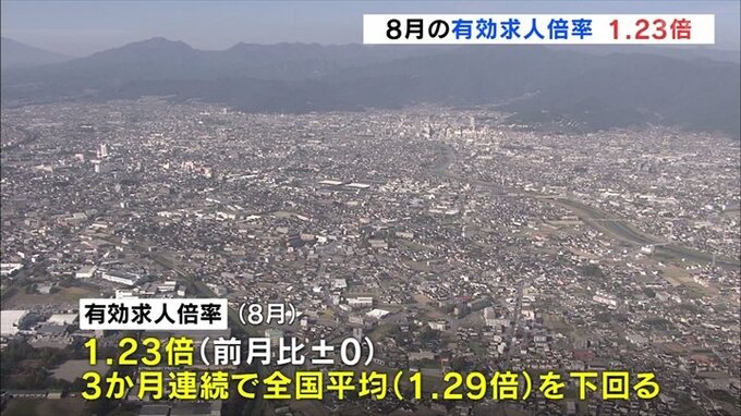 全国平均は1.29倍で県内は3か月連続で全国平均を下回っています。