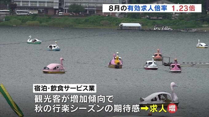 山梨労働局によりますと今年8月の県内の有効求人倍率は7月と同じ1.23倍でした。