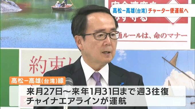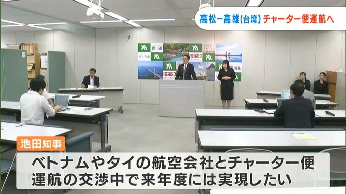 高松空港と、台湾の高雄とを結ぶチャーター便が、11月27日から約2か月間運航されることが決まりました。香川県の池田知事が会見で明らかにしました。