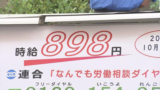 10月7日から45円引き上げられ時給898円となった最低賃金について10日、青森県内で最大の労働組合の団体「連合青森」が街頭活動で周知しました。連合青森の塩谷進会長たちは青森市内で街頭に立ち、改定された最低賃…