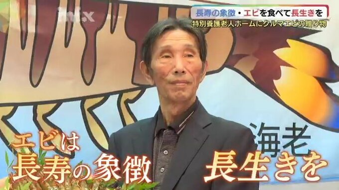 エビは縁起のいい食べ物で、長寿の象徴とされていて、お年寄りに長生きしてほしいと、おととしから続く取り組みです。