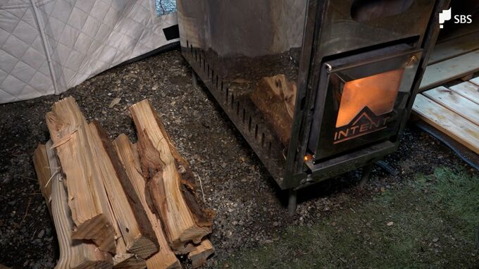 電気やガスで熱する一般的なサウナに比べて、テントサウナは目の前で薪を燃やすため、間近で熱を感じられるのが特徴です。