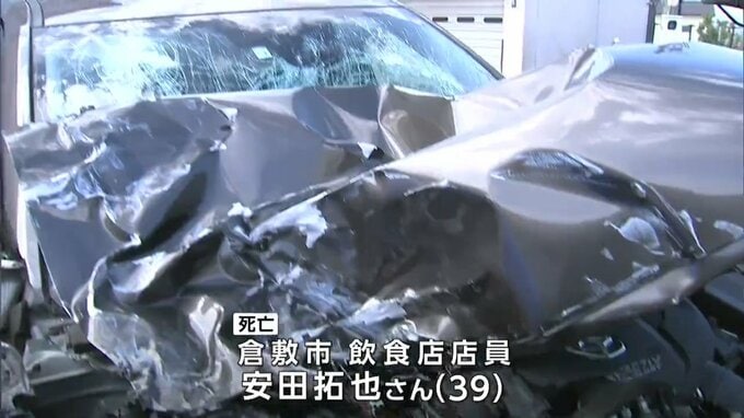 この事故で乗用車を運転していた倉敷市の飲食店店員、安田拓也さん(39)が病院に運ばれましたが、約2時間後に死亡が確認されました。