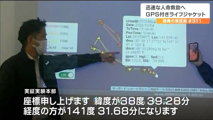 「座標申し上げます。緯度が38度、39.28分、経度の方が141度、31.68分になります」