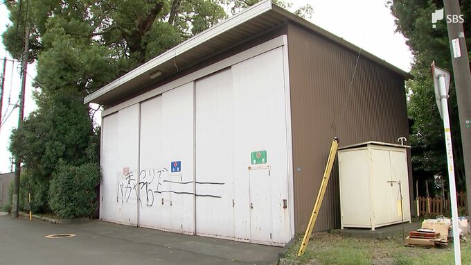落書きの被害があったのは、藤枝市藤枝にある屋台などを保管する小屋です。10月6日、3年に1度行われる「藤枝大祭り」の初日の朝、近くに住む人が落書きに気づきました。落書きはスプレーのような黒の塗料で約5mにわたり、書かれていました。