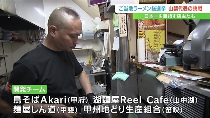 甲府市の鶏そば「Akari」の店主 古屋明人さんを中心に、県内2つのラーメン店や甲州地どり生産組合がチームを組み研究を重ねて生み出した一杯です。