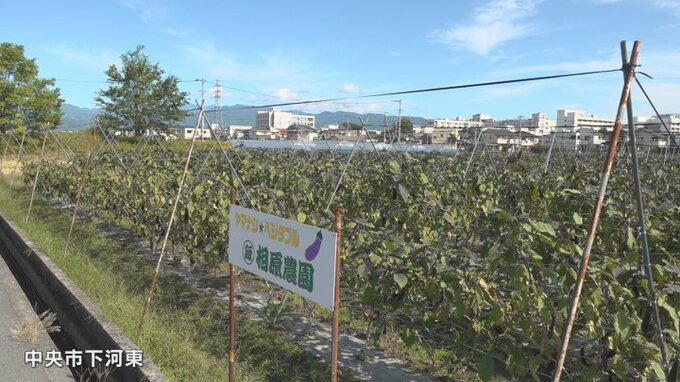 中央市の畑では10月いっぱい、秋ナスの収穫が続きます。