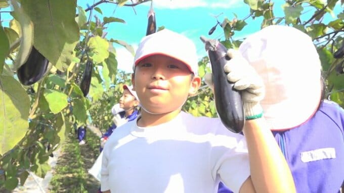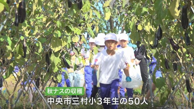 実りの秋。今が旬の秋ナスを山梨県中央市の小学生が収穫しました。