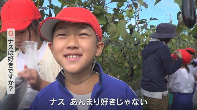 楽しそうな子どもたち、ナスは好きかと聞いてみると・・・