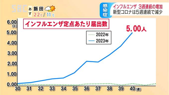 長野県内のインフルエンザの感染者が3週連続して増加しています。