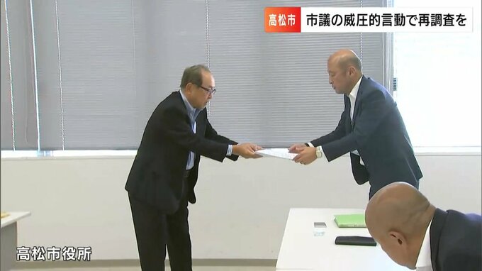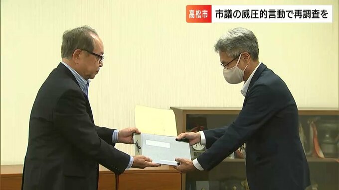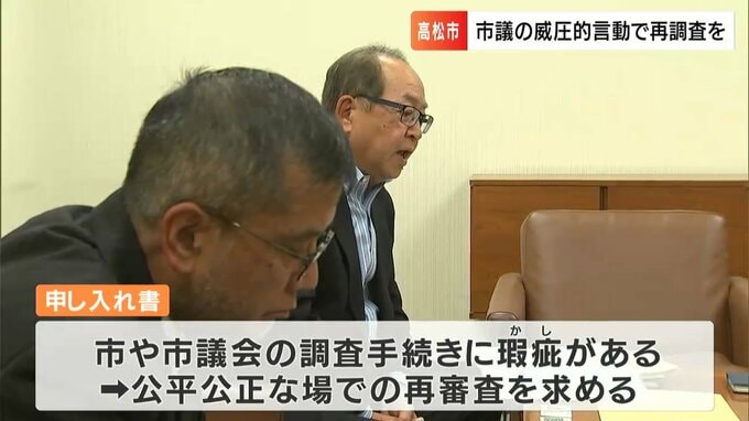 香川県の高松市議が市の職員に威圧的な言動をしたとされる問題で、調査の手続きに不備があるとして市民が申し入れを行いました。