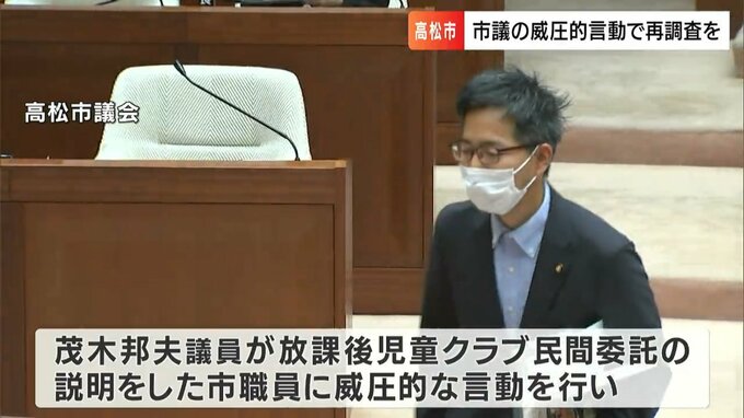 この問題は茂木邦夫議員が、放課後児童クラブの民間委託について説明した市の職員に対し威圧的な言動を行い、