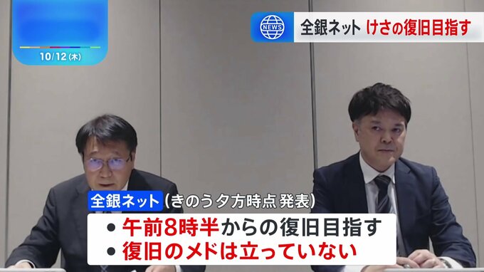 11の金融機関で他の銀行への振り込みができなくなったシステム障害で、影響の出た取引はおとといからあわせて506万件に上りました。きょう午前8時半からの復旧を目指しています。利用客「(振り込みが)できなかっ…