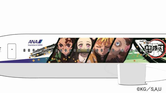 飛行機にあしらわれているのは、TVアニメ「鬼滅の刃」のキャラクター、竈門炭治郎や竈門禰豆子などです。