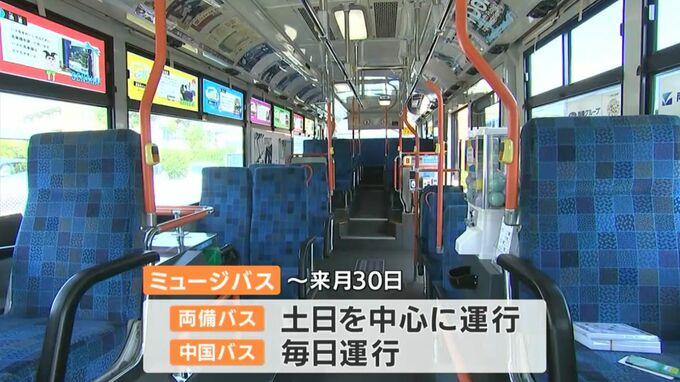 「ミュージバス」は岡山市内では土日を中心に、広島県の福山市内では毎日運行されるということです。